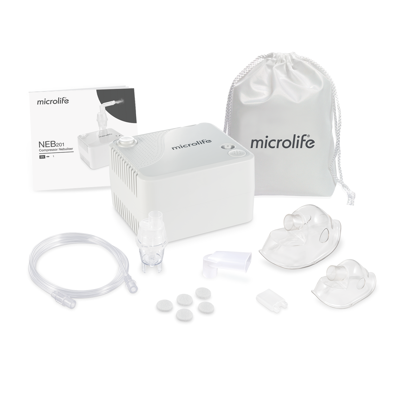 Model NEB 201 został zaprojektowany z myślą o codziennej terapii całej rodziny – w zestawie znajdują się maski dla dorosłych i dzieci, ustnik oraz końcówka nosowa. Cicha praca, kompaktowa konstrukcja oraz stabilna wydajność sprawiają, że NEB 201 to niezawodne urządzenie do domowego leczenia astmy, alergii i infekcji dróg oddechowych.