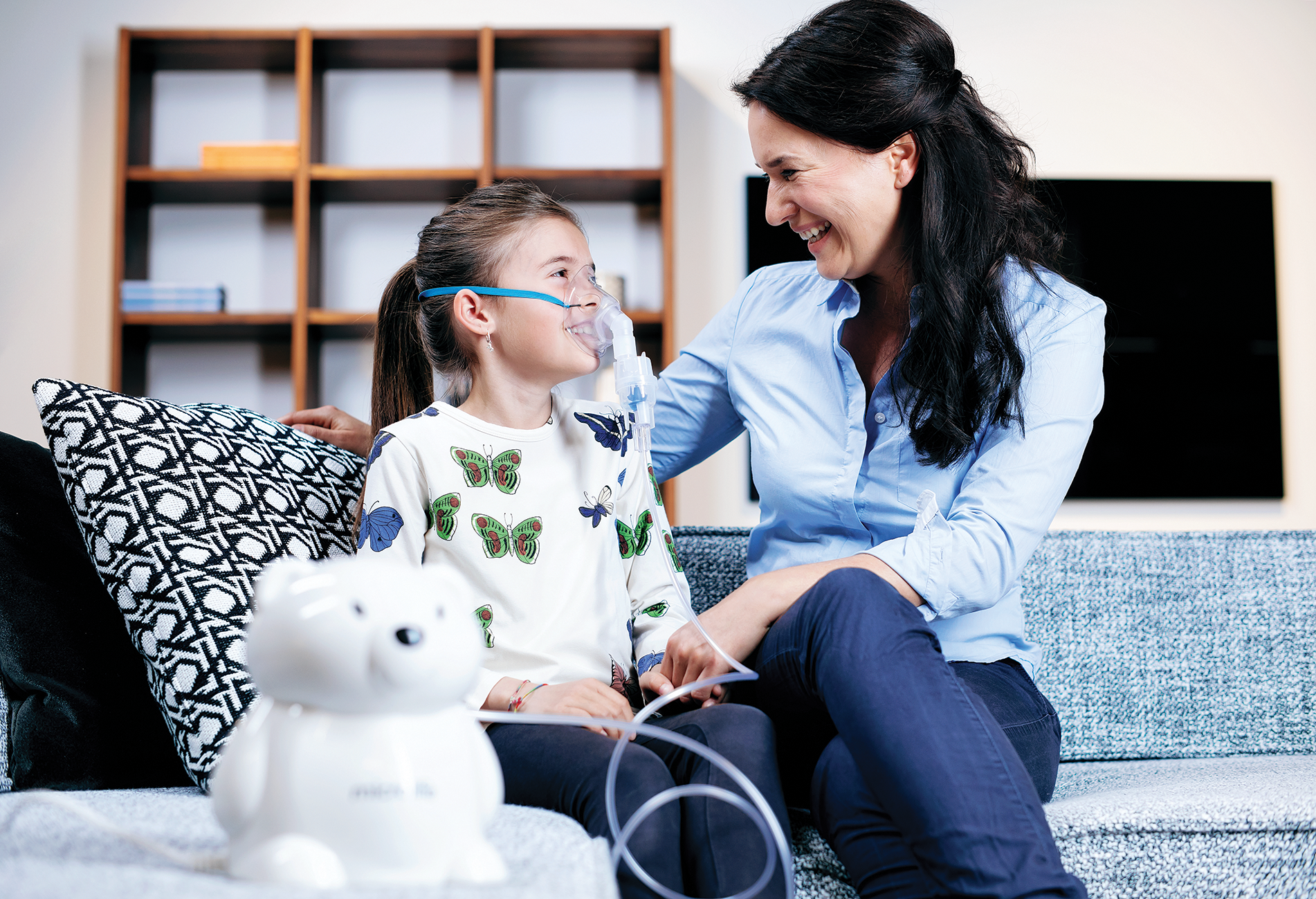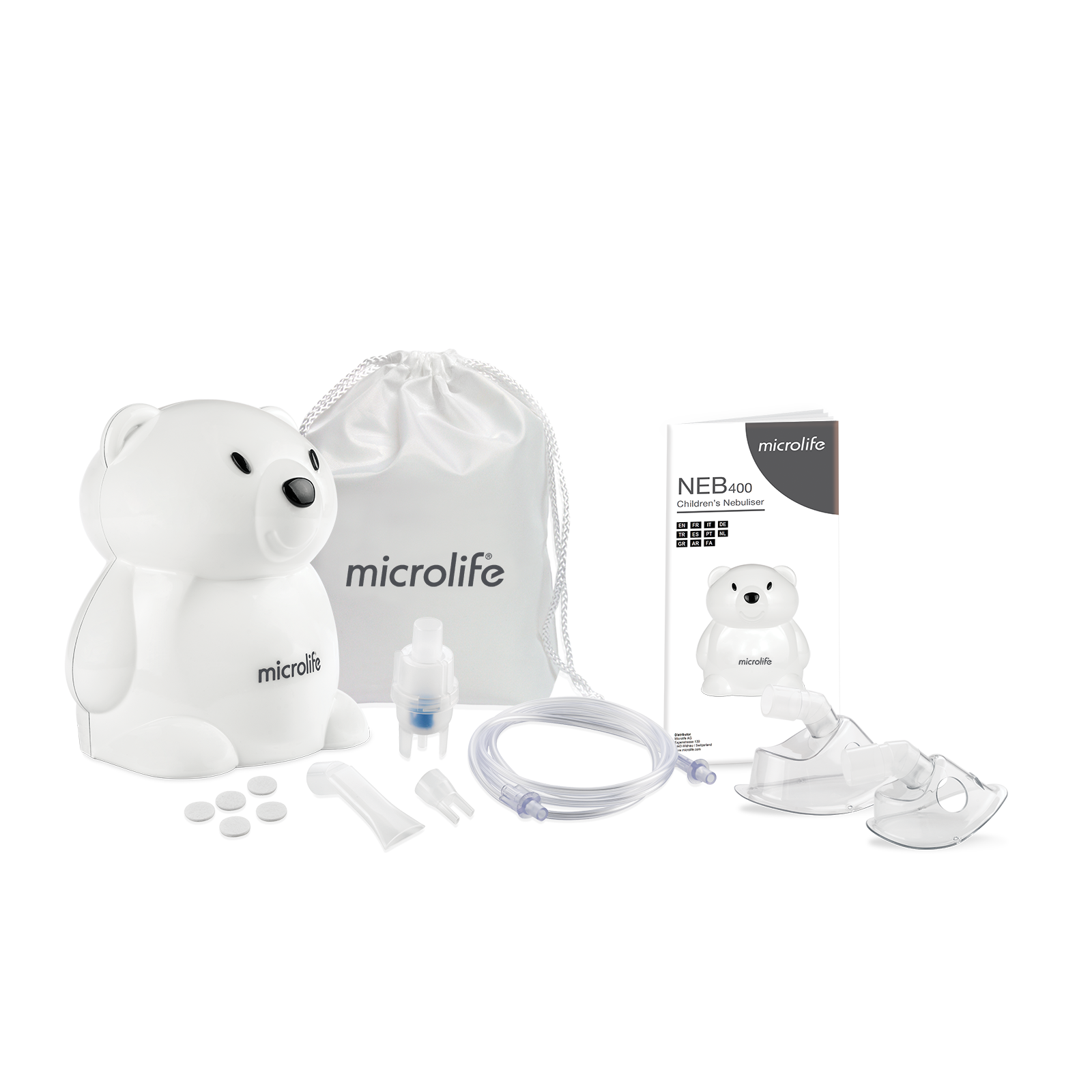 Microlife NEB 400 to wydajny inhalator kompresorowy, który łączy profesjonalną skuteczność nebulizacji z designem przyjaznym dzieciom. Obudowa w kształcie sympatycznego misia pomaga najmłodszym oswoić się z inhalacją, zmieniając codzienną terapię w spokojny i pozytywny rytuał.